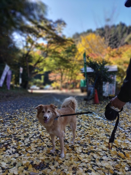犬メインですが、イチョウと、背景のボヤけ感が素敵でした