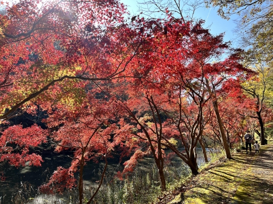 赤く染まった木々の下を歩くのはとても気持ち良いです。沢山の自然に囲まれた公園は居心地がよい場所です。
