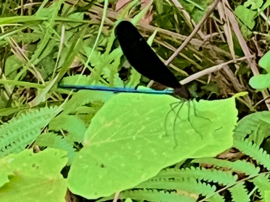 この日ハグロトンボが沢山飛んでいました 蝶のようにヒラヒラと優雅に 神様トンボとも呼ばれるみたいです