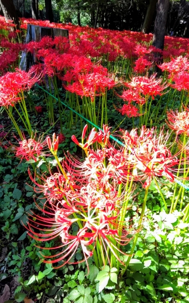彼岸花を見に村上緑地公園へ行って来ました。人気の彼岸花と切り株を一緒に撮りました。彼岸花はちょうど見頃で綺麗でした♡