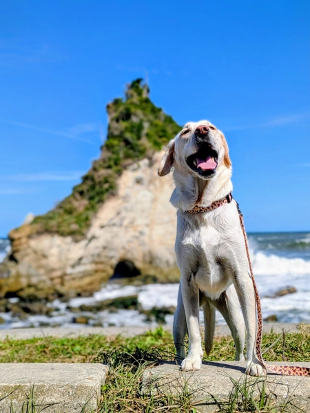 愛犬らぶちゃんと津々ヶ浦に行きました。風を浴びて秋晴れの気持ちの良い日です。波が強く、自然をとても感じました。