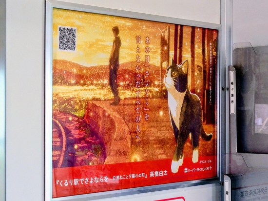 9月中旬の木更津駅の久留里線キハE130の車内に、久留里線が舞台となる小説「ぐるり駅でさよならを」の広告が掲出されていました。千葉県・ローカル線・猫が好きな人にお薦めです!