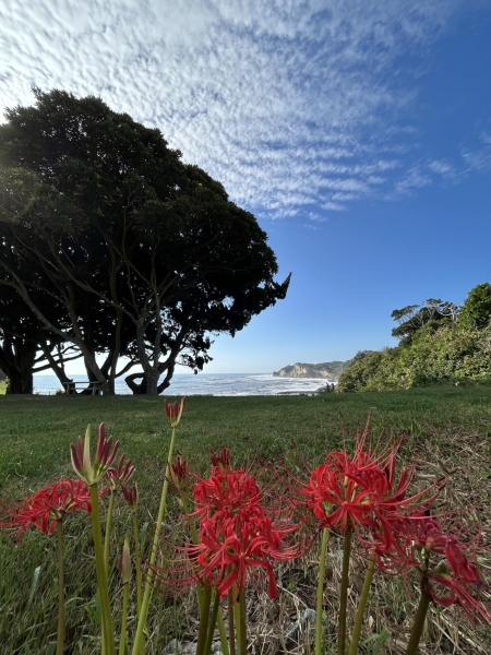 大盛況の大原はだかまつりが終わった翌朝、散歩でふらり立ち寄り八幡神社でお参り。神社がある八幡岬には秋の空(いわし雲)と曼珠沙華(彼岸花)が秋の訪れを教えてくれました。