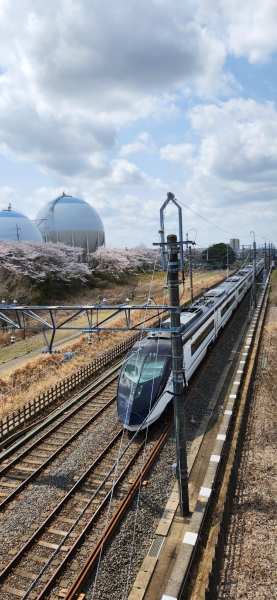 たまたま桜の写真を撮るため橋の上に居たら、スカイライナーがこちらに向かってくるのが見えました。 思わず、何枚も撮った中の一枚です。
