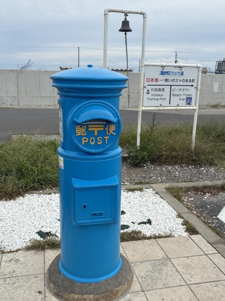 海の青色ポスト発見💡幸せの鐘🔔もありました。