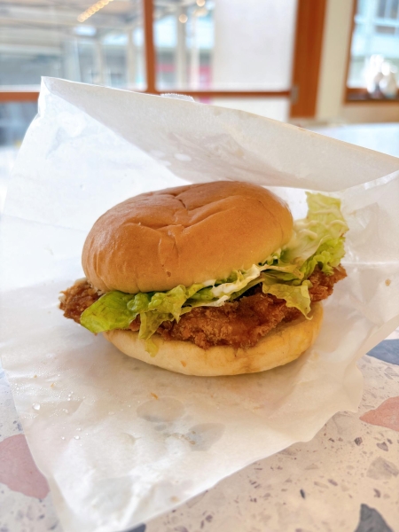 東京湾フェリー金谷港のりばにあるハンバーガーショップ「Ryo-Sea」でテイクアウト! お店一番人気という「漁師バーガー」をいただきました。 サクサクの衣に包まれた肉厚なアジフライが丸々1つサンドされていて、大満足でした!