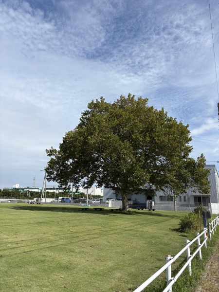 丸い実がたくさんなっています。葉が落ちると、丸い実が目立って可愛いです。ポンポリの木と命名!