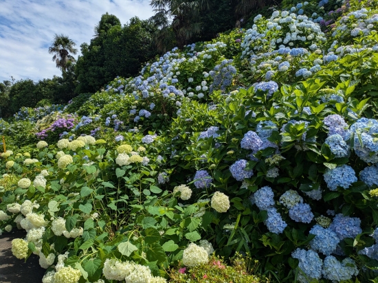松戸市の本土寺(こちらもあじさいで有名)から足を伸ばしてあじさい通りへ。様々な種類のあじさいが乱れ咲きで圧巻。