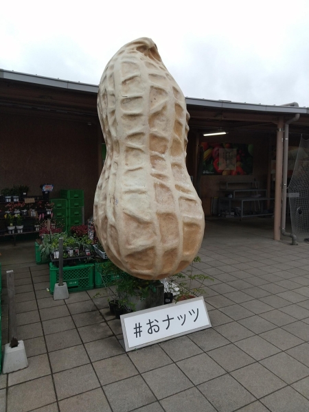 うまくたの里、入口前に、 大きなぴーなっつオブジェ がありました🥜 撮らずにはいられない📷️