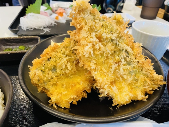浜金谷駅から歩いて8分程のところにある金谷食堂に行きました。アジフライが揚げたてで、大きくて、熱々フワフワの食感で、美味しかったです。少し並びますが整理券方式だったのと電話呼び出ししてくれるので、お土産見に行ったりできるのも良かった。