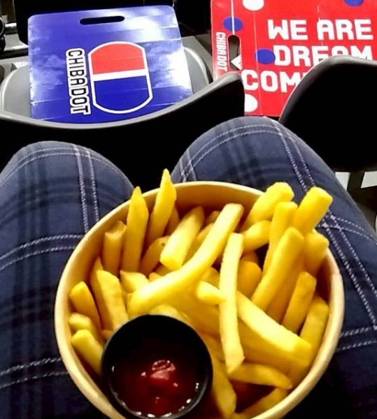 試合前に、キッチンカーにて販売していた、プライドポテトと棒の肉巻きおにぎりをいただき、美味しかったです。
