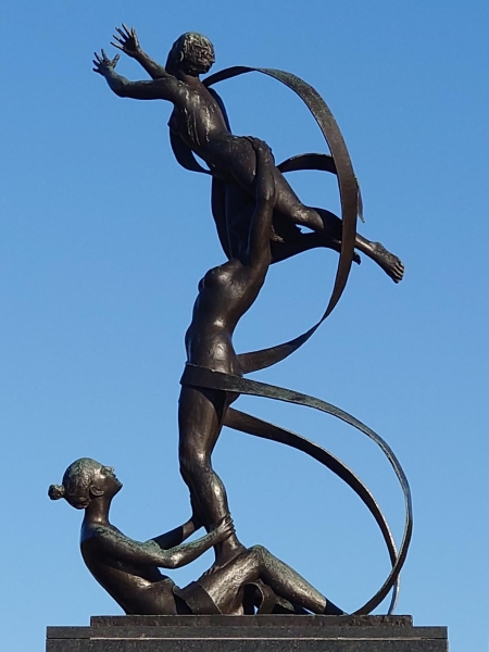 11月上旬の青葉の森公園です。3人の女性の銅像に雲ひとつない青空だけを入れて撮りました。