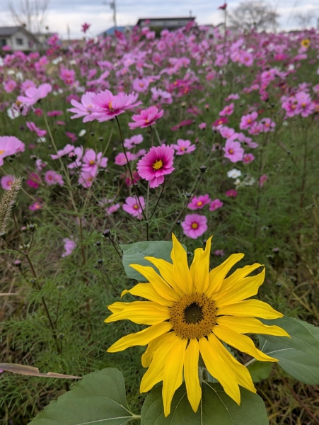 コスモスをバックに🌻がまだ咲いています。