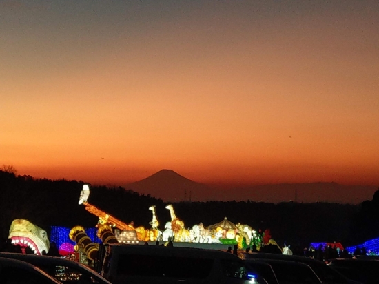 イルミネーションを見に行きちょうど後ろに富士山も、幻想的?にみえました。