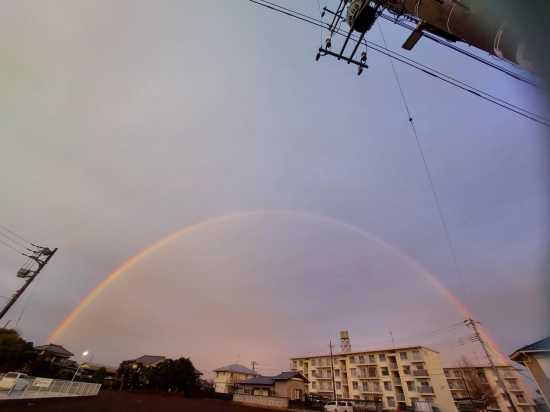 通りすがり、とても大きな虹がかかっていたので撮影しました。写真ではわかりずらいかもしれませんが、実は二重で虹がかかっています!