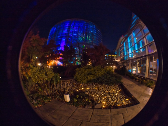 中庭からの全景です。botanica museun at 18:17 Dec,6 2025(GRD 1st+holga fish eye)