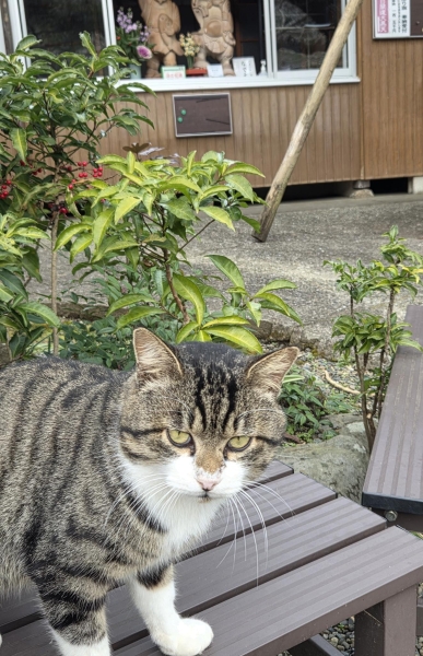 真野寺の猫は人懐っこくて、いつも癒されます。いつも猫ばかり見てしまうので、今日初めて後ろに「なで大黒」さんがおられるのに気がつきました。