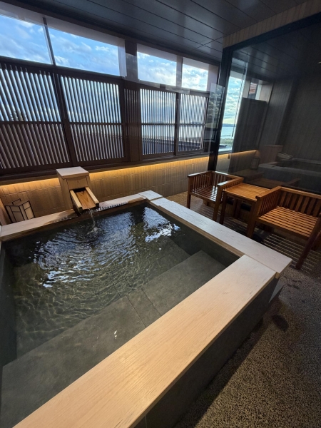 鏡ヶ浦を眺めながら入る露天風呂は最高に気持ち良いです!夕陽も綺麗なのです!