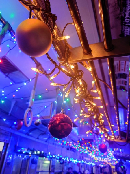 12月下旬、小湊鉄道のイルミネーション列車です。この日はイルミネーション列車の最終日でしたが、沢山の人が乗車していました。薄暗い車内はイルミネーションのあかりで綺麗でした。