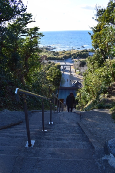 厄祓坂の急階段を上から撮影。天気が良くてよかったです。