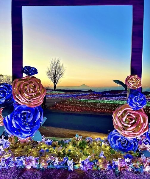 薔薇の写真立てのようなオブジェがイルミネーションに華やかさを加えていました