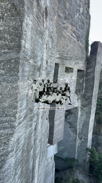 石切場の絶景、職人の方の偉大さを感じました。QRコードアクセスして職人さん達を貼り付けて楽しめます