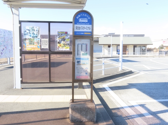 鉄道が通らない多古町での公共交通ターミナルと言える場所は、ここ【多古台バスターミナル】です。JRバス関東や京成バス千葉イーストのバス路線が集まります。 このバスターミナルには小さな待合所があり、その建物内では多古町の簡単な観光情報も手に入ります。