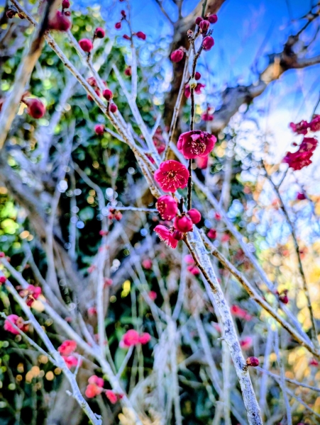 快晴の青空と梅の花