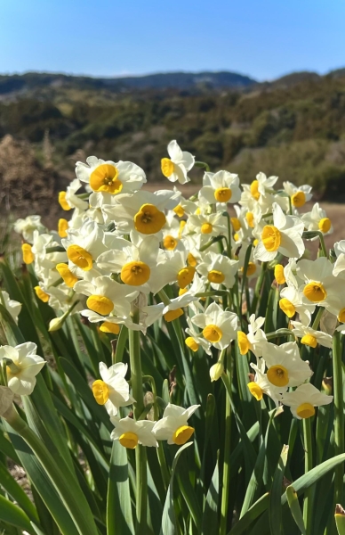 山並を背に咲く水仙
