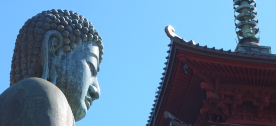 歴史ある名刹の五重塔を背景した大仏さまに心を動かされてシャッターを切りました。