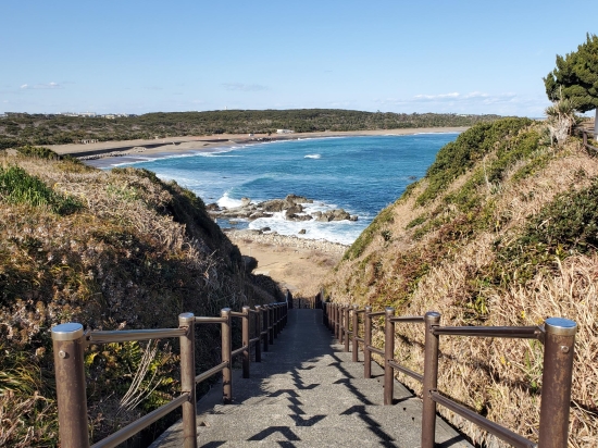 2月のまだまだ冬なのに、ポカポカ春のように温かい穏やかな日、家族で銚子へドライブに行きました。 犬吠埼灯台のすぐ左側に、海へ降りていく階段がありました。 なんだか、わくわくしたので、撮ってみました。