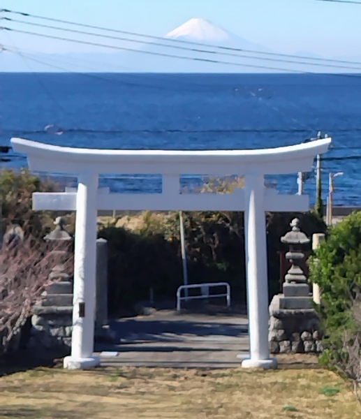 布良崎神社から鳥居越しの富士山。電線がなければもっと良いのだけれど。