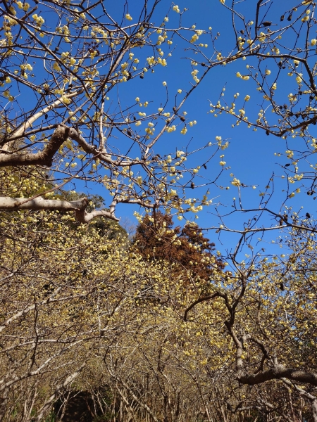 1月下旬の石井蝋梅園です。個人の蝋梅園で無料のうえ、丁寧に手入れされていて見事でした。沢山の黄色い花が星のように青空に映えて綺麗でした。また、正面のろうばいのトンネルも綺麗でした。