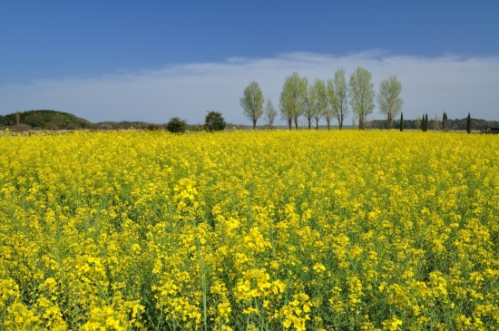 ここでの撮影はラベンダーに背景ポプラというのが定番のようで、この年は隣の畑で咲いた菜の花でもいいアクセントになりました。