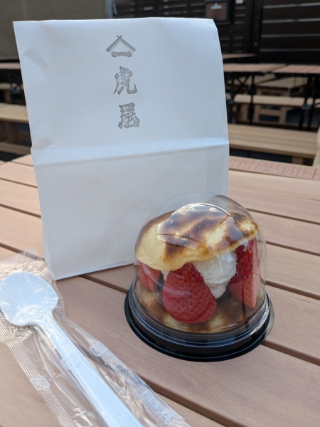帰りにお父さんが見つけた看板。美味しそうだったから止まった。値段は850円と高級なスイーツに驚いたけど、歴史を感じる美味しさに感動。