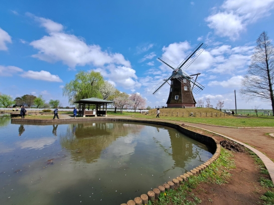 風車と桜、チューリップを楽しむことができます。日本にいながらオランダにいるような写真をとることができます!是非訪れてみてくたさい!!