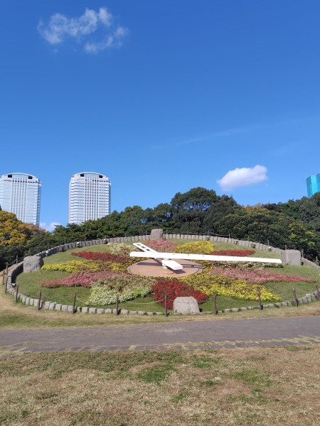 公園で散歩していました。綺麗な花時計を発見しました!