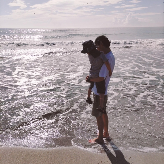 息子の海デビューは千葉の海でした♪ 波の音と潮の匂い、海水の冷たさ、何もかもが初体験で初めは怖がっていましたが徐々に興味を持っていく様子が印象的でした。