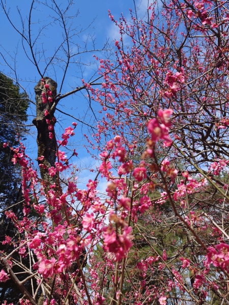 3月中旬の清水公園です。桜は咲いていませんでしたが、梅はまだ楽しめました。濃いピンクの花が青空に映えて綺麗でした。