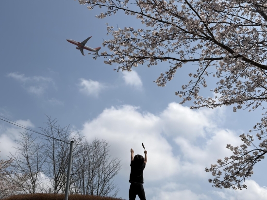 飛行機と桜と電車とお花のコラボに感激しました。大きな音を聞いて「なに?なに?」とキョロキョロしていたら、手の届きそうな距離に大きな飛行機が現れたので大興奮でした。今では珍しいエンジンが4つ付いた飛行機も見られて、ラッキーでした。2歳の子どもも「飛行機、大きいね!」「お花、綺麗だねぇ〜」「いいにおいだねぇ〜」「あっ電車だぁ〜!」と言って、テンション爆上りでした。さくら館で、おむすびや焼き芋やサンドイッチや飲み物を買って、青空の下で食べました。デザートに、苺のソフトクリームやチョコバナナも!想い出深い素敵な1日となりました。ありがとうございました。また、訪れたいと思います。