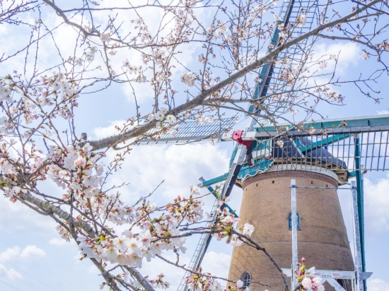 風車と桜