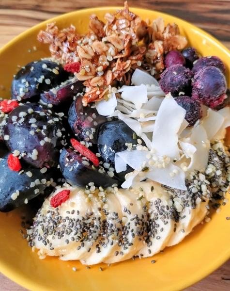 フルーツ盛り沢山のアサイーボウル、食べ応えがあるし、美味だし、皆さん是非、ご賞味あれ!!