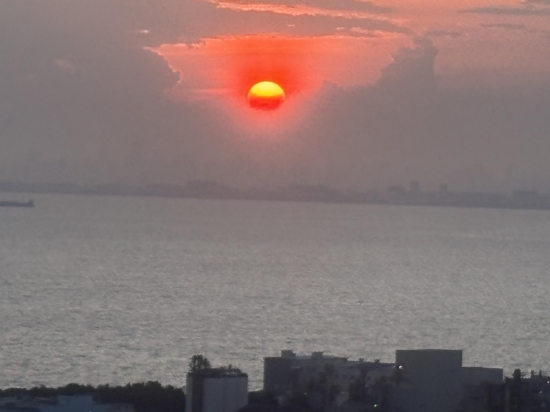 海に沈む夏の夕日。