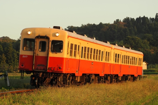 夕日の中、のんびりと走るキハ200です♪