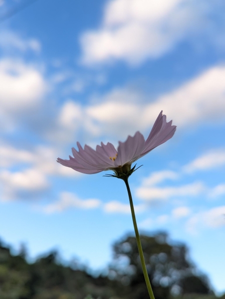 コスモス一輪でも青空に映えます。