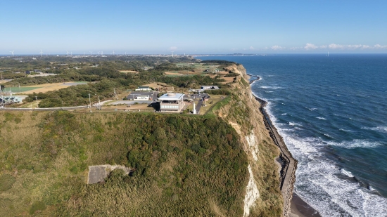 ドローンで空撮した刑部岬に佇む飯岡灯台です。