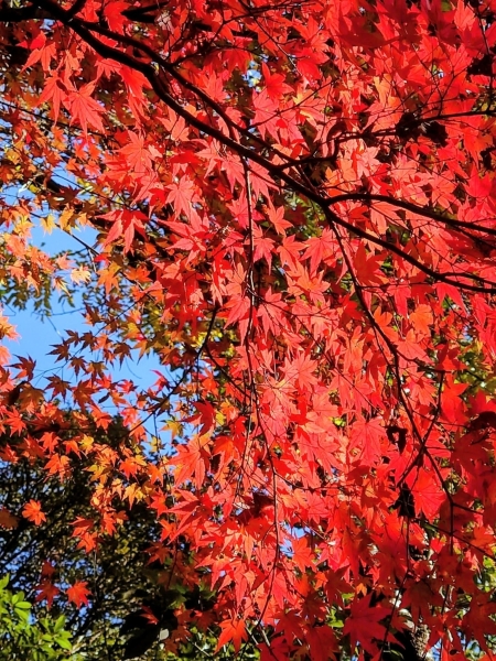 11月下旬のクオードの森です。今年はイルミネーションがないので昼間に訪れました。赤く紅葉したモミジが陽を浴びて輝いて綺麗でした。