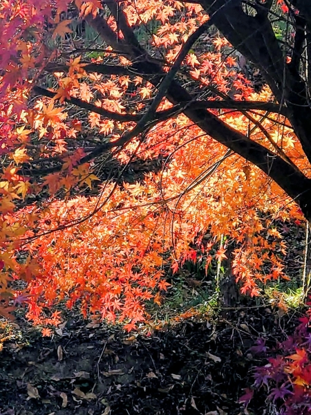11月下旬の佐久間ダム湖親水公園です。佐久間ダムば春のサクラ、冬のスイセンが有名ですが、秋のオレンジ色に紅葉したモミジも綺麗でした。