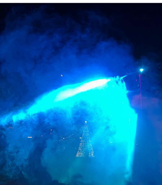 スモークの中からクリスマスツリーを撮りました。キラキラのクリスマスツリーも素敵だけれど、いつもと違った雰囲気のツリーです。