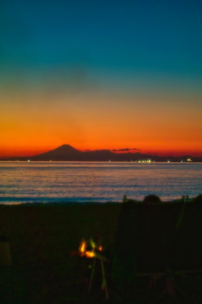 焚き火をしながら、夕日を楽しむ時間、なんと贅沢なことでしょう。inage beach at 16:59 Dec,6 2025